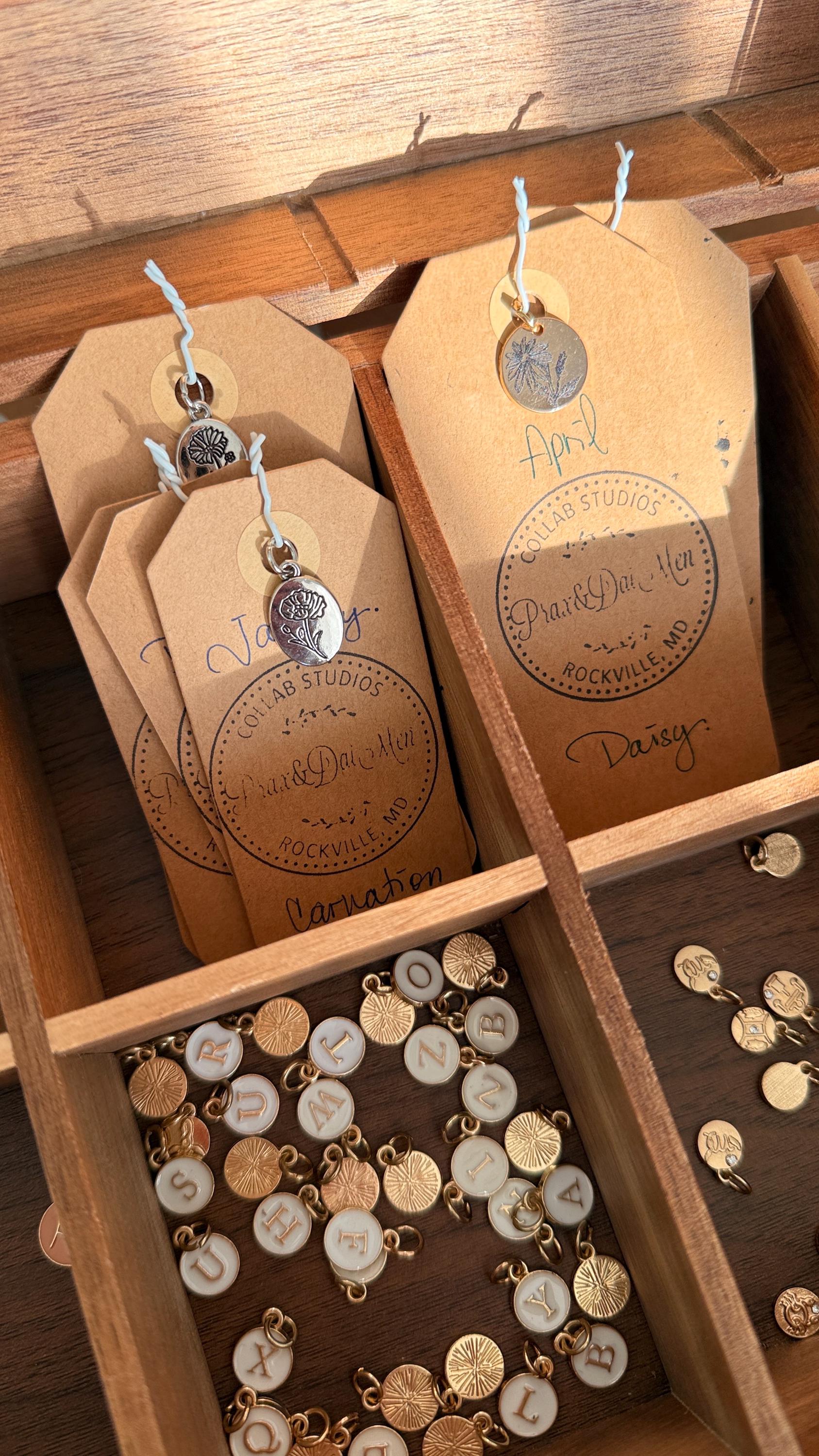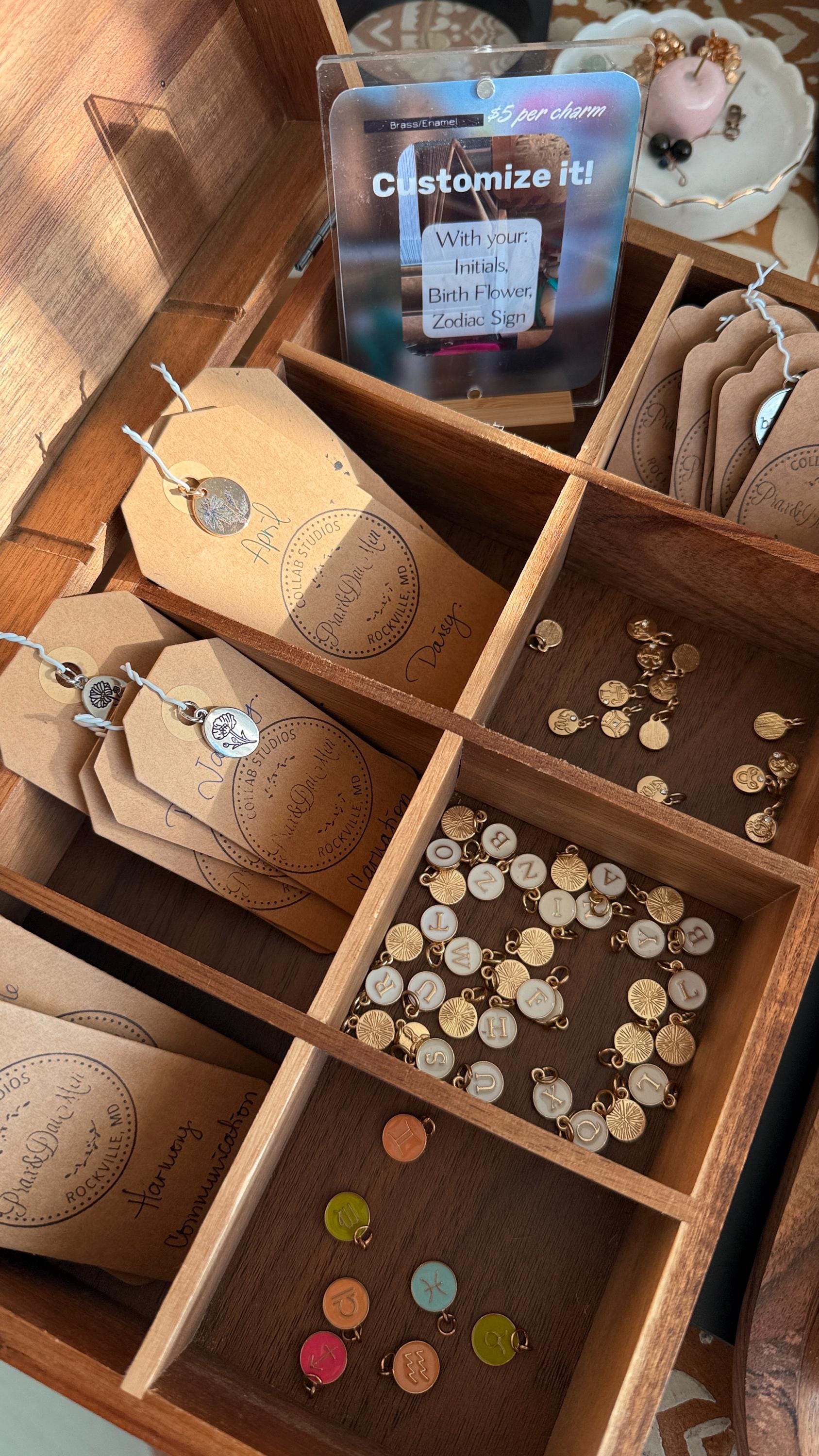 Choose your selections below and indicate your Initial / Zodiac Sign (colored or not) /Gemstone of choice / Birth Month.